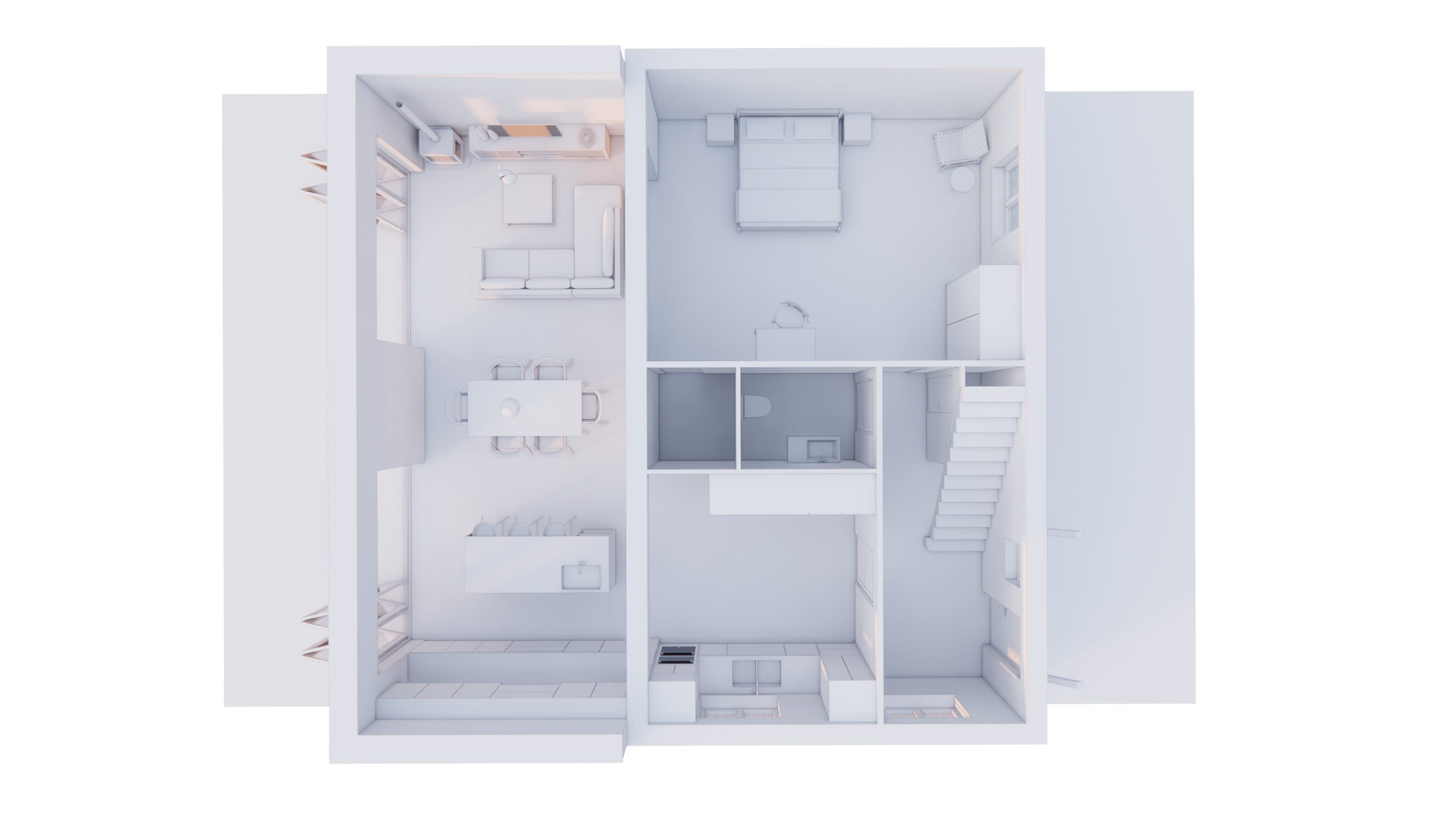 We can play with the way that the room/space is delineated to provide both sanctuary and a way to be folded into the main living area of the house.